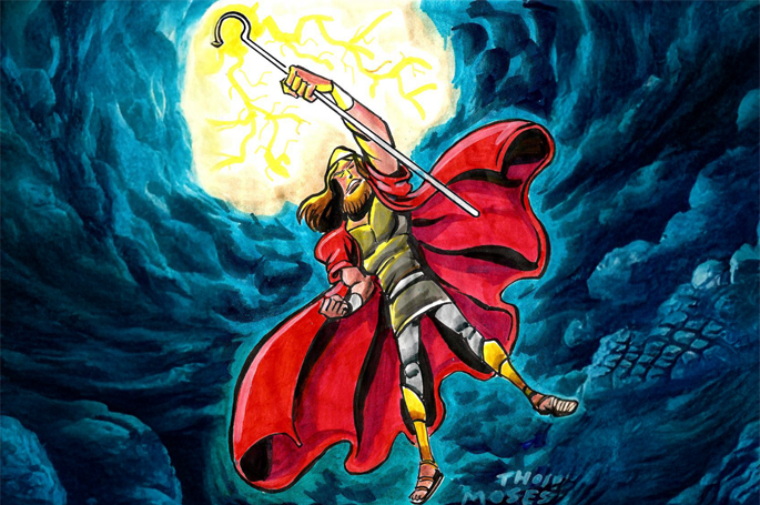 חדר גיבורי התנ"ך – דמויות תנ״כיות כמו שמשון הגיבור, דוד המלך ומשה רבנו היו השראה לדמוית המופיעות בתערוכה ״גיבורים כחול לבן״.